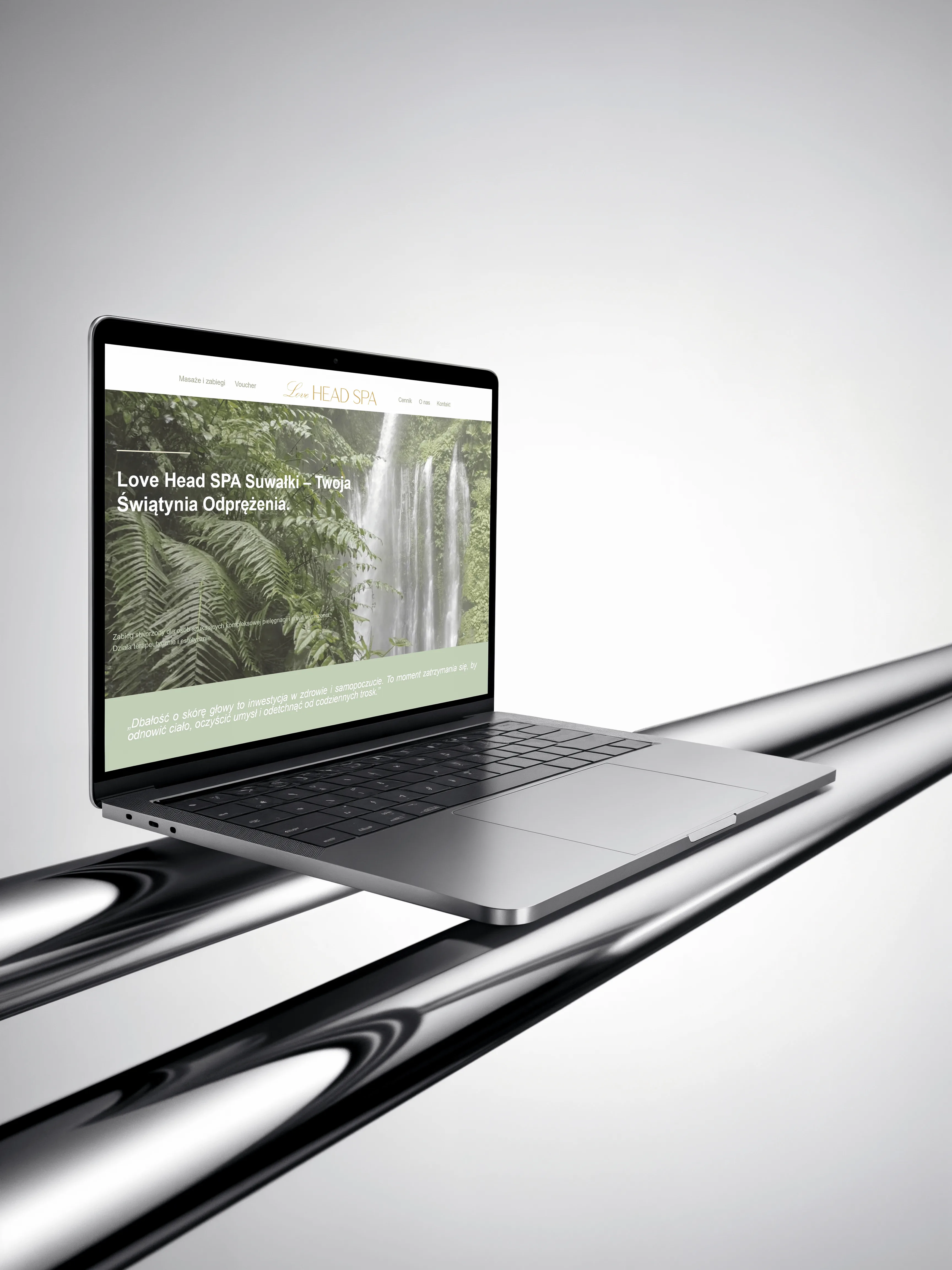 Minimalistyczna strona wizytówkowa dla gabinetu head spa, zaprojektowana z myślą o widoczności lokalnej i szybkim kontakcie z klientem.