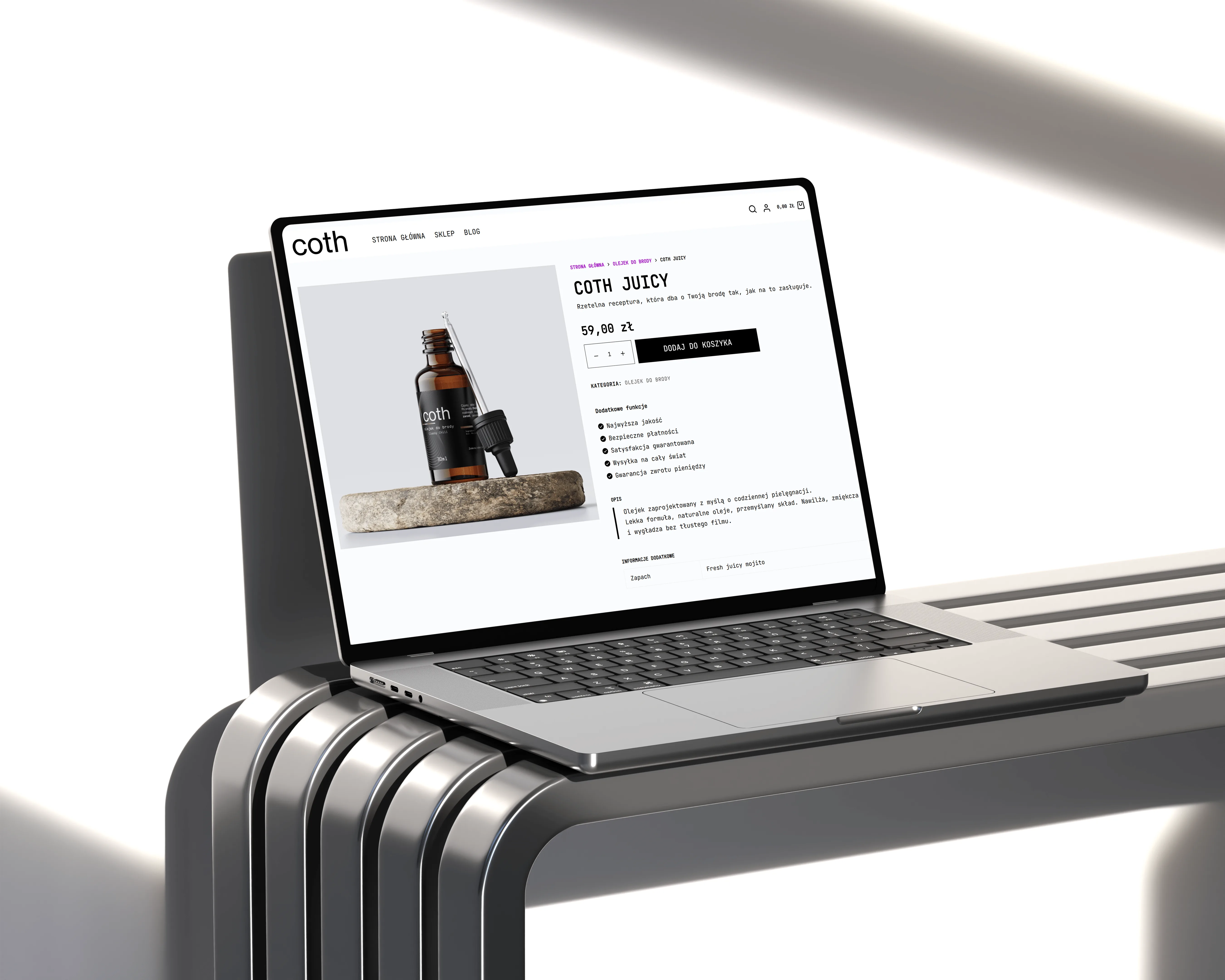 Kompleksowy projekt sklepu internetowego dla marki COTH – nowej, wchodzącej na rynek marki kosmetycznej specjalizującej się w produktach do stylizacji włosów. Projekt został zaprojektowany od zera w Figma, a następnie wiernie wdrożony w WordPressie z wykorzystaniem WooCommerce oraz edytora Gutenberg.